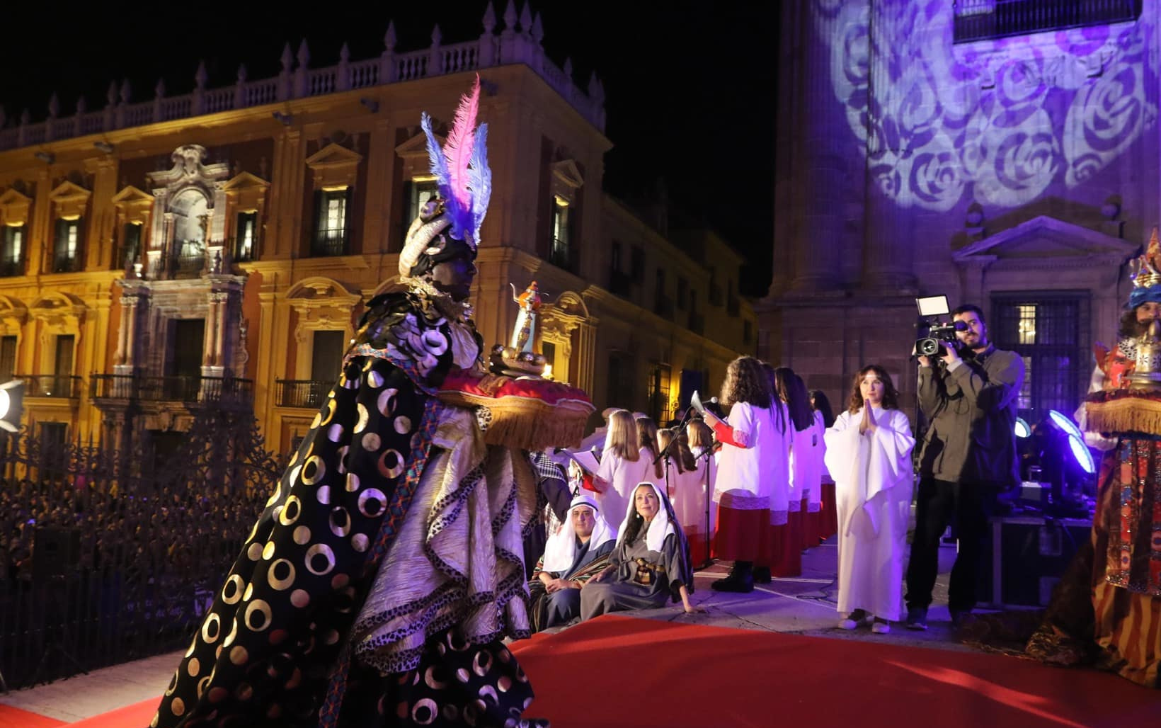Tras el paso de la cabalgata, el broche se traslada al corazón de la ciudad. Al llegar a Molina Lario, Sus Majestades continuarán a pie hasta la Catedral, donde realizarán la ofrenda al Niño en un belén viviente, acompañada por un concierto de la Escolanía del Orfeón Universitario de Málaga.