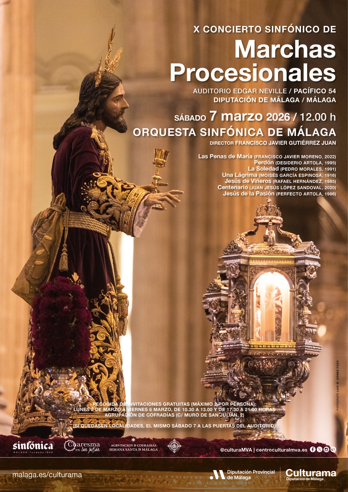 Dos días después, el sábado 7 de marzo, el Auditorio Edgar Neville acoge el X Concierto Sinfónico de Marchas Procesionales, a las 12.00 horas, también con la Orquesta Sinfónica de Málaga, en esta ocasión bajo la dirección del maestro Francisco Javier Gutiérrez Juan.