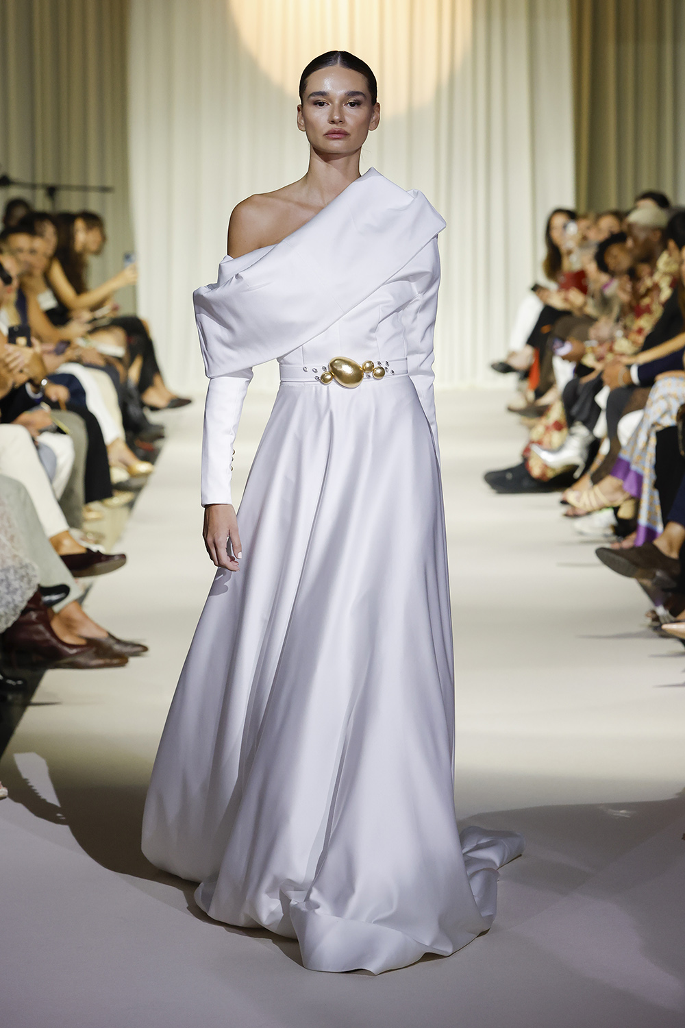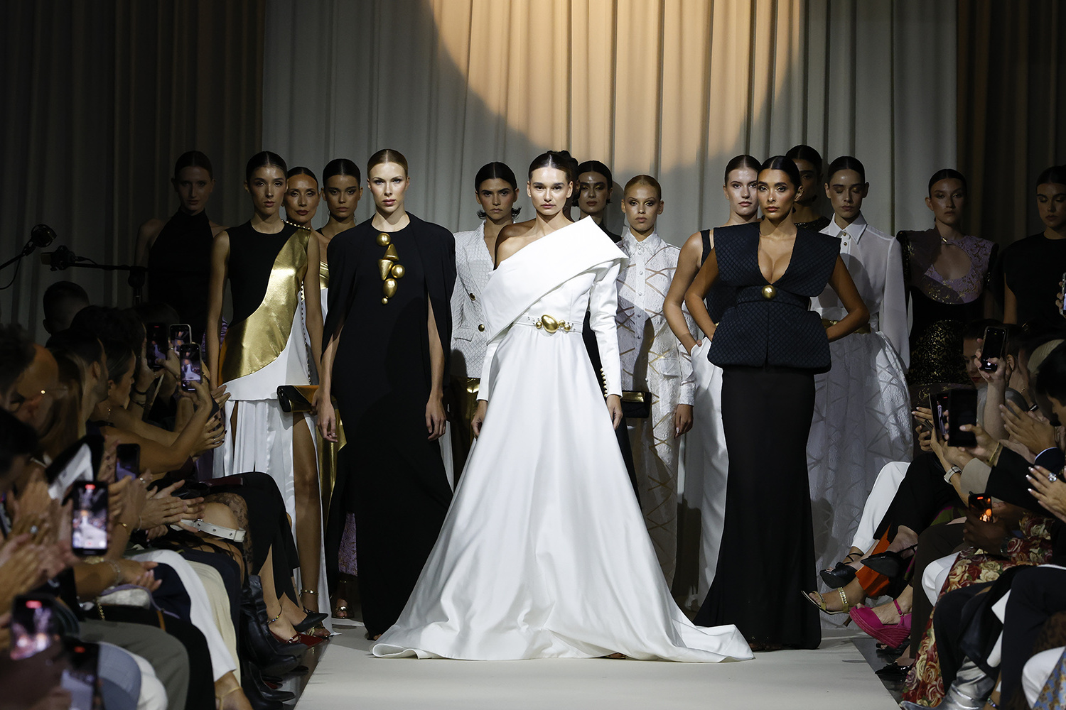 La solemnidad de estas melodías convirtió el desfile en una experiencia sensorial en la que moda, tradición y música se fundieron en perfecta armonía.