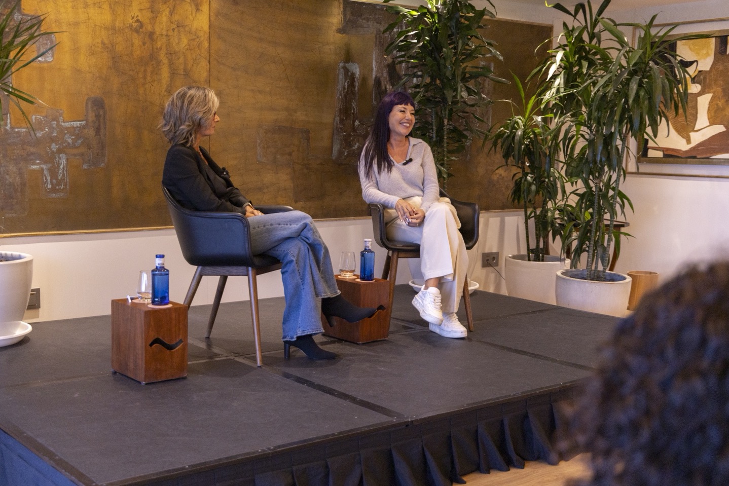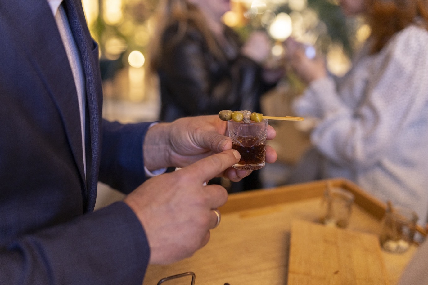 Tras la entrevista, los asistentes disfrutamos de un cóctel en Audrey del Hotel Meliá Don Pepe. Una propuesta gastronómica que estuvo a la altura de la delicadeza del evento, combinando tradición, innovación y producto de calidad. Desde el inicio, con la clásica gylda y un vermouth bien servido, hasta bocados más creativos como el tartar de ventresca especiado, la cecina de León con toques cítricos, la ensaladilla de gamba blanca, o la exquisita combinación de remolacha asada y aguacate.
