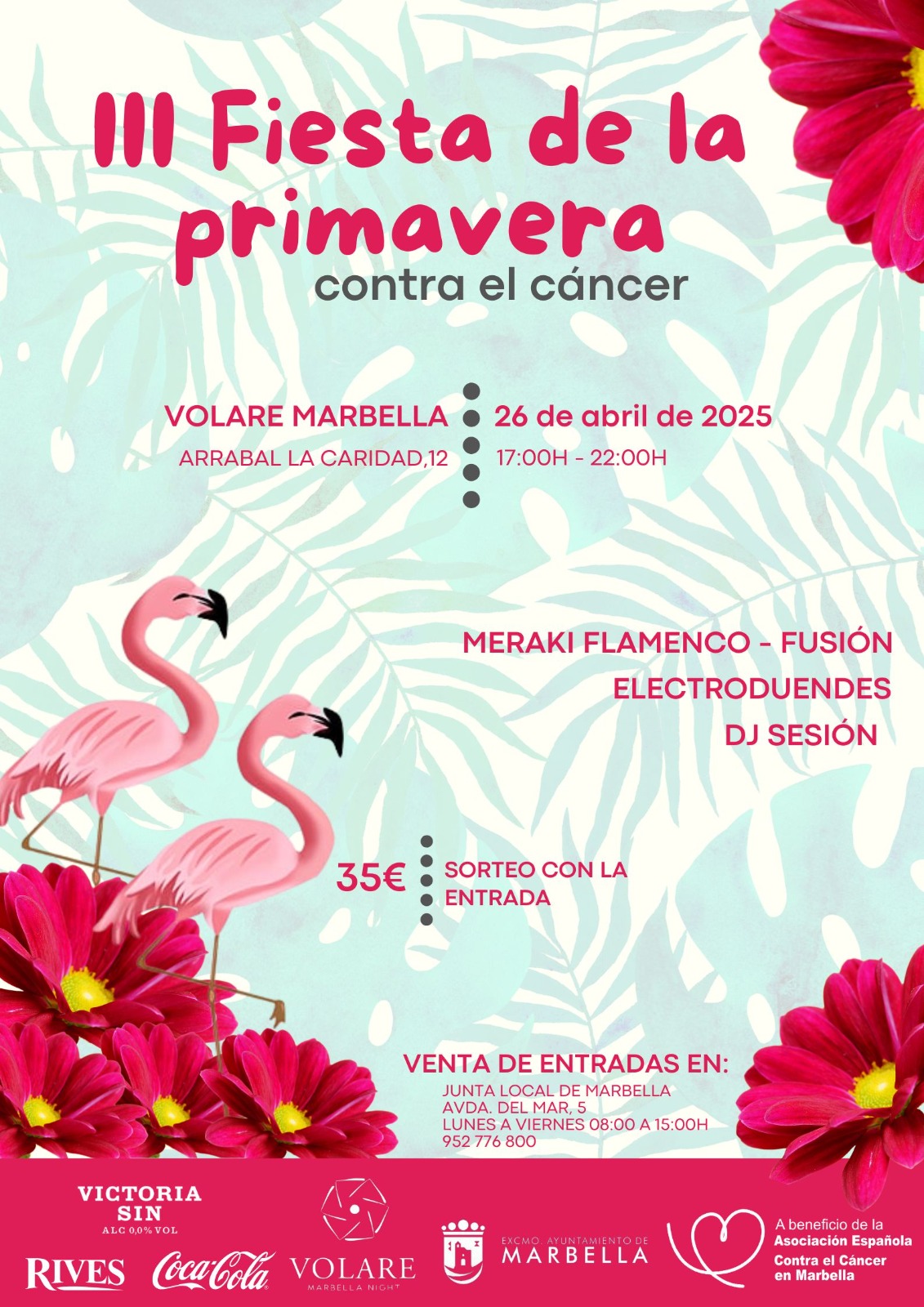 🎟️ Entradas disponibles en la sede de la AECC en Avenida del Mar, nº5 (Marbella). Precio: 35€ con consumición incluida.
